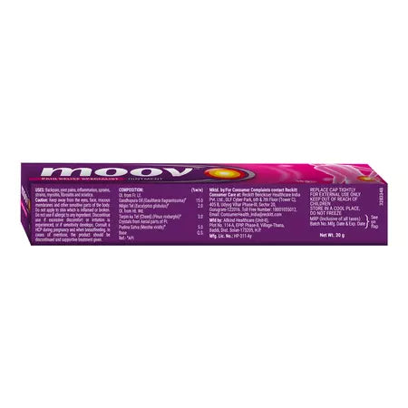 Moov Pain Relief Cream is a trusted solution for quick relief from backaches, muscle stiffness, joint pain, and minor body strains. Enriched with natural Ayurvedic ingredients, it penetrates deep into the affected area to provide fast action and long-lasting comfort. Easy to apply and non-greasy, Moov is the go-to pain relief cream for everyday use.