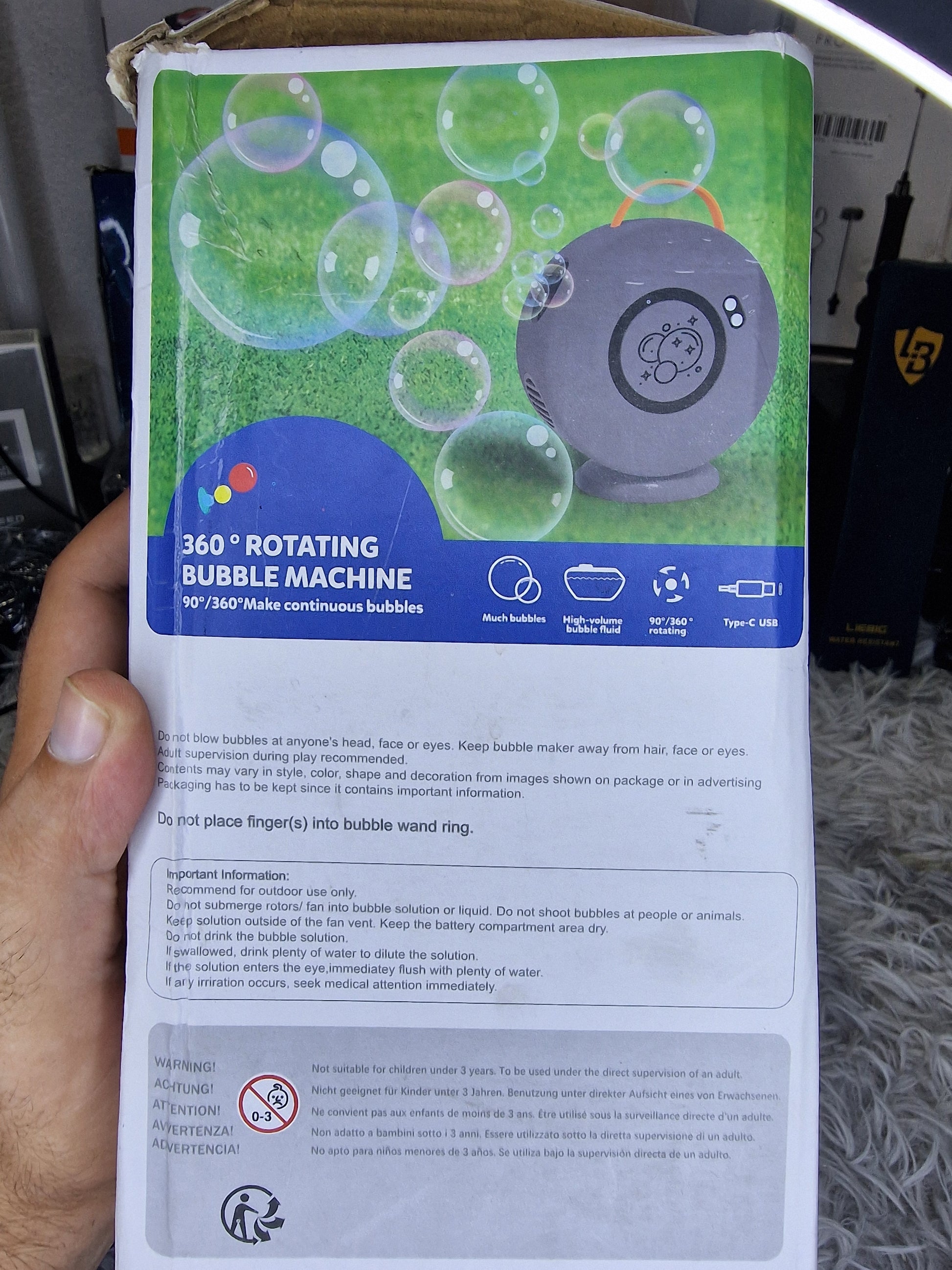 With its durable design and rechargeable convenience, this bubble machine is the ultimate choice for family fun, celebrations, and entertainment.